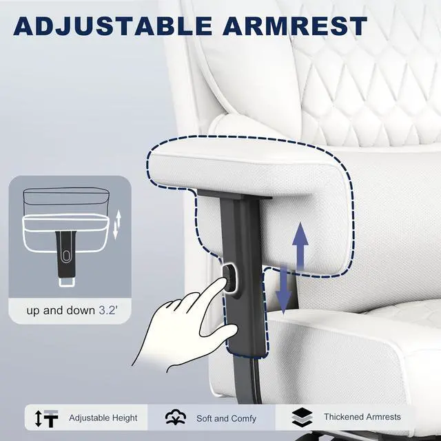 Height-Adjustable Armrests for Customized Posture : The armrests can be effortlessly adjusted up and down to match your preferred sitting position, whether youre typing at a desk, leaning back to rest, or gaming. This flexibility reduces shoulder and arm strain, ensuring optimal comfort for users of different heights and postures.