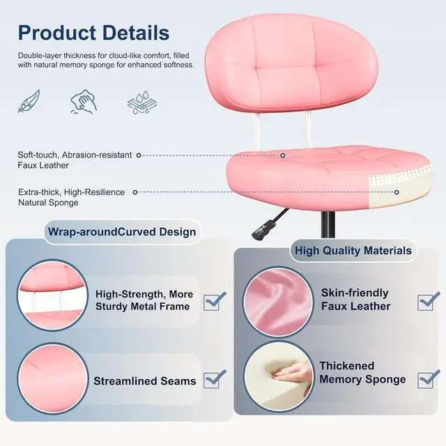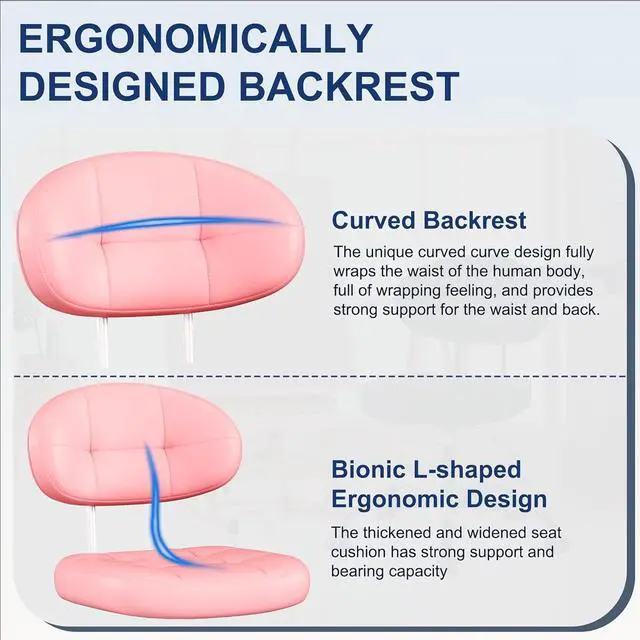 Wrap-around Ergonomic Design: Our vanity chair is crafted with precision to offer the ultimate ergonomic experience. The unique wrap-around curve design conforms perfectly to the natural contours of your body, providing optimal support for your back and promoting good posture. Alleviate back pain and discomfort even during long hours of work.