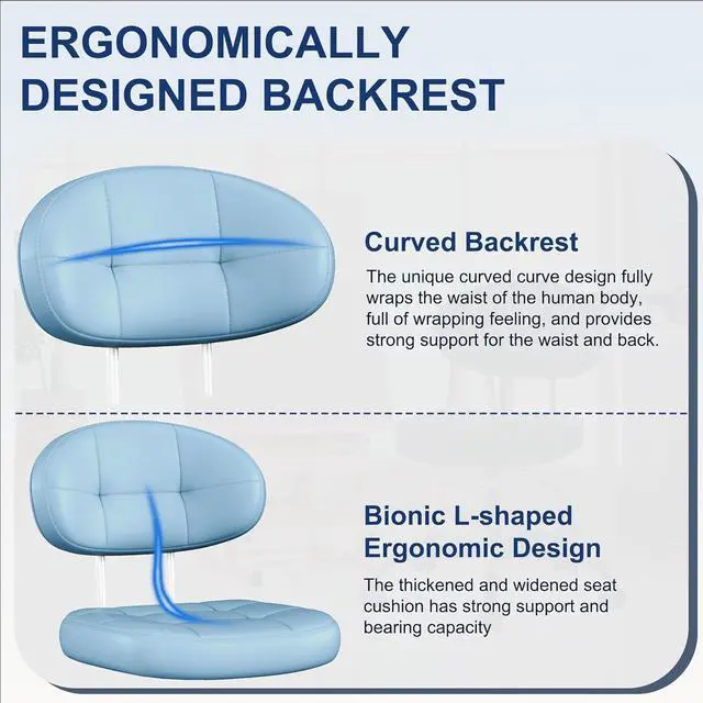 Wrap-around Ergonomic Design: Our vanity chair is crafted with precision to offer the ultimate ergonomic experience. The unique wrap-around curve design conforms perfectly to the natural contours of your body, providing optimal support for your back and promoting good posture. Alleviate back pain and discomfort even during long hours of work.