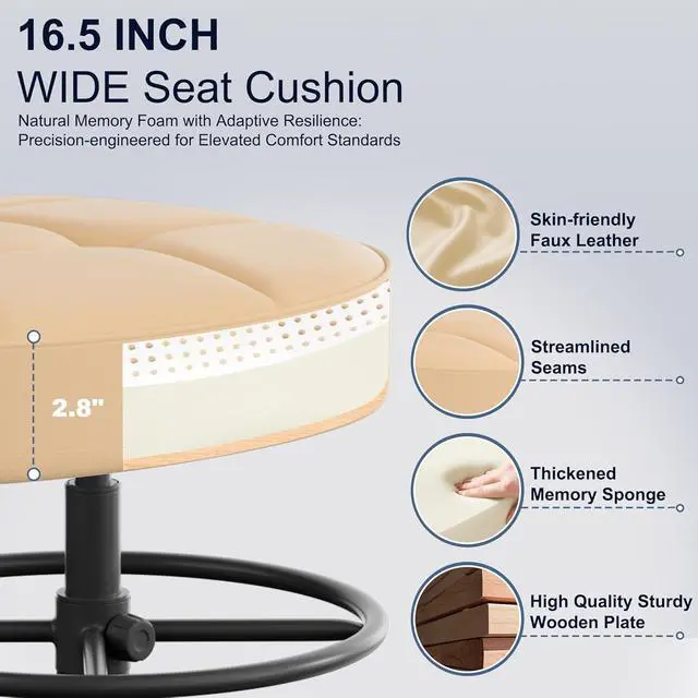 Premium Leather - Skin-Friendly and Stylish: The standing desk chair is upholstered in high-quality leather that is not only soft to the touch but also gentle on your skin.It is free from any irritants, making it ideal for those with sensitive skin.The smooth texture and rich color of the leather add a touch of luxury to your office decor, while its durability ensures that the chair will look great for years to come.