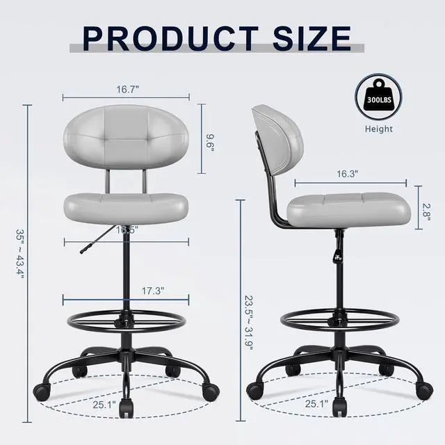Ergonomic Excellence: Our office drafting chair is crafted with precision to offer the ultimate ergonomic experience. The unique wrap-around curve design conforms perfectly to the natural contours of your body, providing optimal support for your back and promoting good posture. Alleviate back pain and discomfort even during long hours of work.