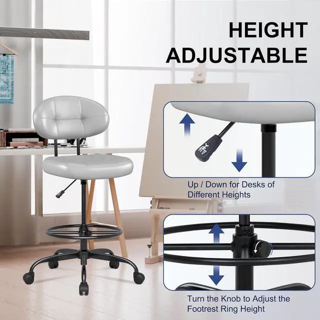 Premium Leather - Skin-Friendly and Stylish: The standing desk chair is upholstered in high-quality leather that is not only soft to the touch but also gentle on your skin.It is free from any irritants, making it ideal for those with sensitive skin.The smooth texture and rich color of the leather add a touch of luxury to your office decor, while its durability ensures that the chair will look great for years to come.