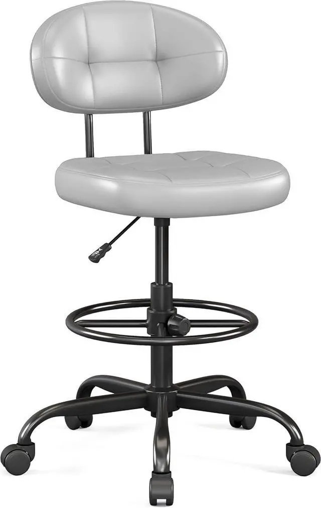 Misolant Drafting Chair, Armless Tall Office Chair with Footrest Ring for Standing Desk, Small Faux Leather Executive Computer Chair with Adjustable Height for Bar Lab Counter Height Desk, Gray