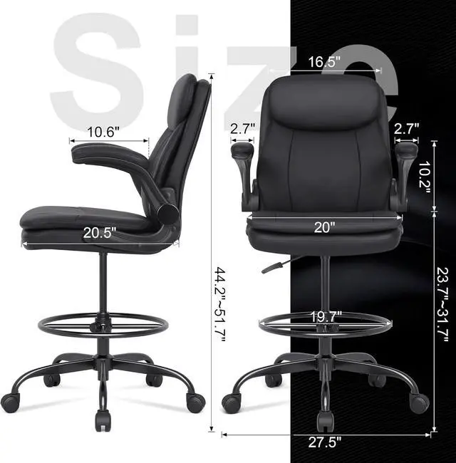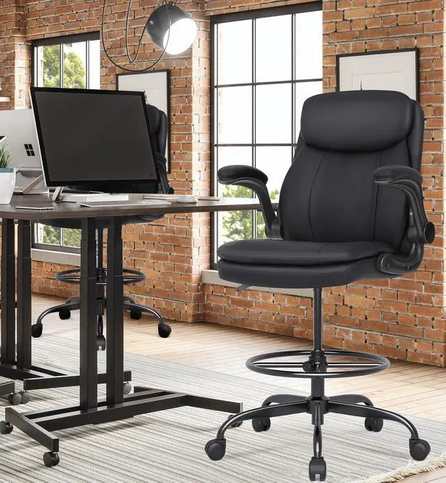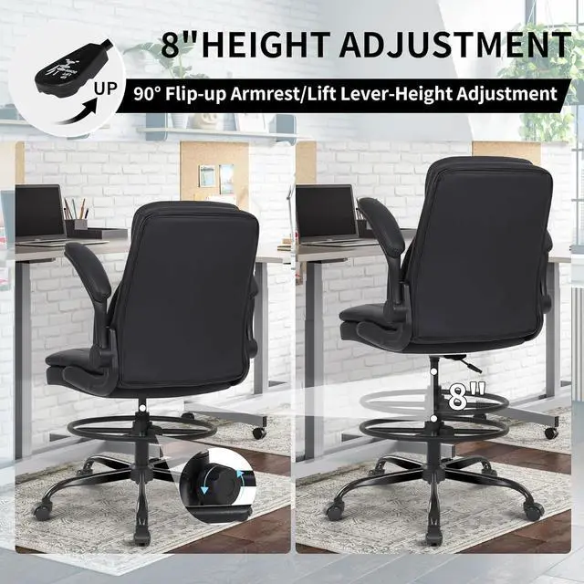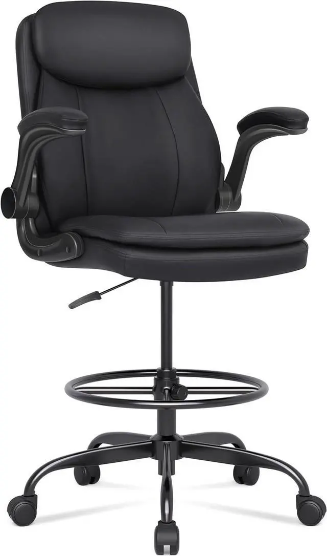 Misolant Drafting Chair, Tall Office Chair for Standing Desk, High Leather Executive Office Chair with Adjustable Height and Flip-up Armrest for Counter Height Desk