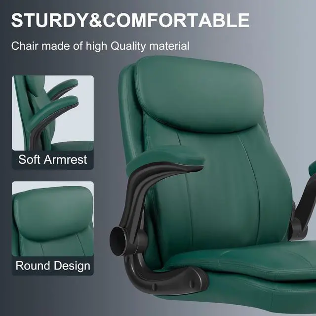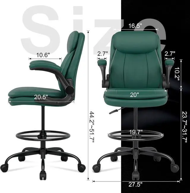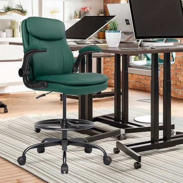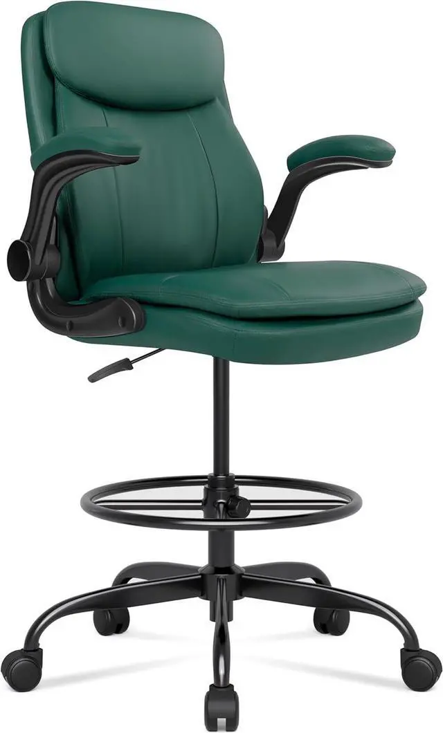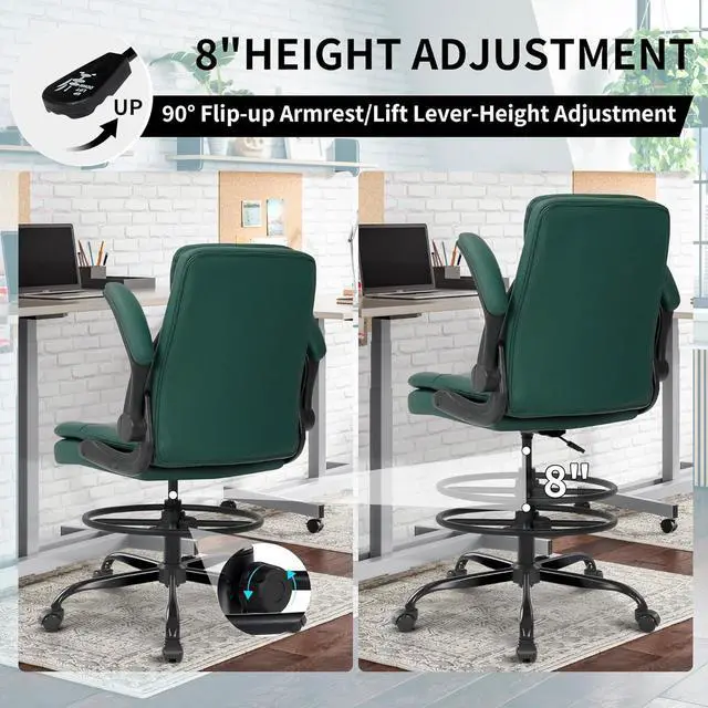 Misolant Drafting Chair, Tall Office Chair for Standing Desk, High Leather Executive Office Chair with Adjustable Height and Flip-up Armrest for Counter Height Desk Green