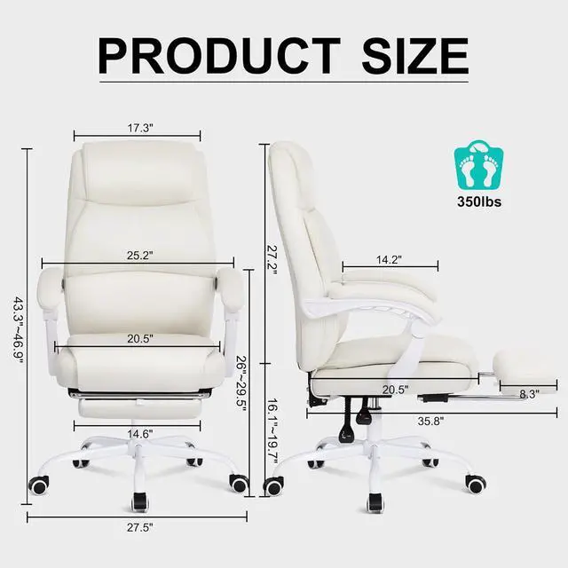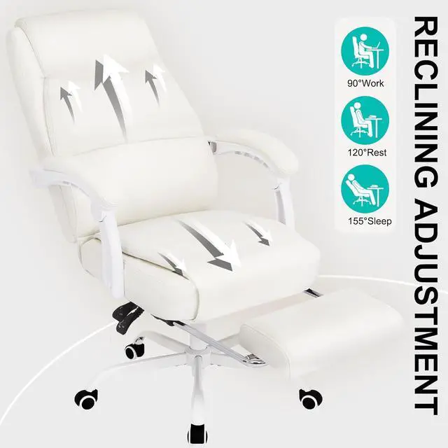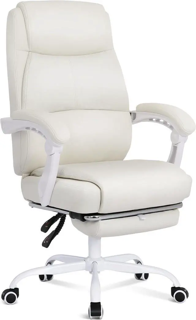 Misolant Big and Tall Office Chair with Footrest, High Back Desk Chair with Linkage Armrest, 90-155° Recline Executive Computer Chairs with Adjustable Height for Home Beige White
