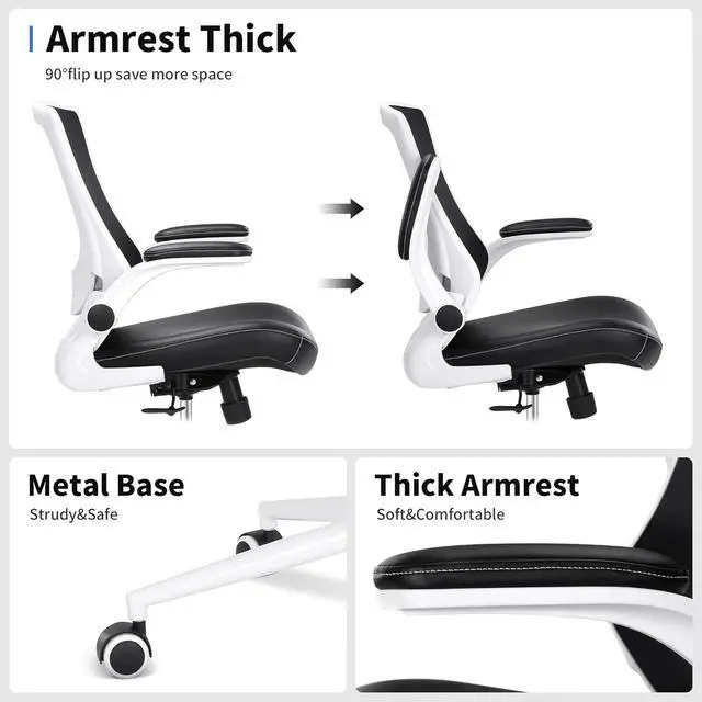 Multi-function: (1) The waist can be adjusted up and down by 2 inches to find the most suitable position for your waist, reducing strain on the lumbar muscles and fully protecting your waist. (2) The thick and soft flip armrests can be flipped 90 degrees to save space. (3) The footrest support can be adjusted up and down to fit your height and provide support for your feet, reducing thigh pressure and promoting blood circulation.