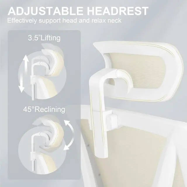 2D Ergonomic Lumbar SupportMade from soft and breathable fabric, the backrest reduces discomfort caused by heat and sweat. The newly defined 2D lumbar support offers both up and down, before and after adjustments, giving you a more fulfilling support experience. Unlike single-direction up and down adjustments, the added flexibility of before and after adjustments provides you with more options. Furthermore, we include a complimentary headrest to save you from any additional expenses.