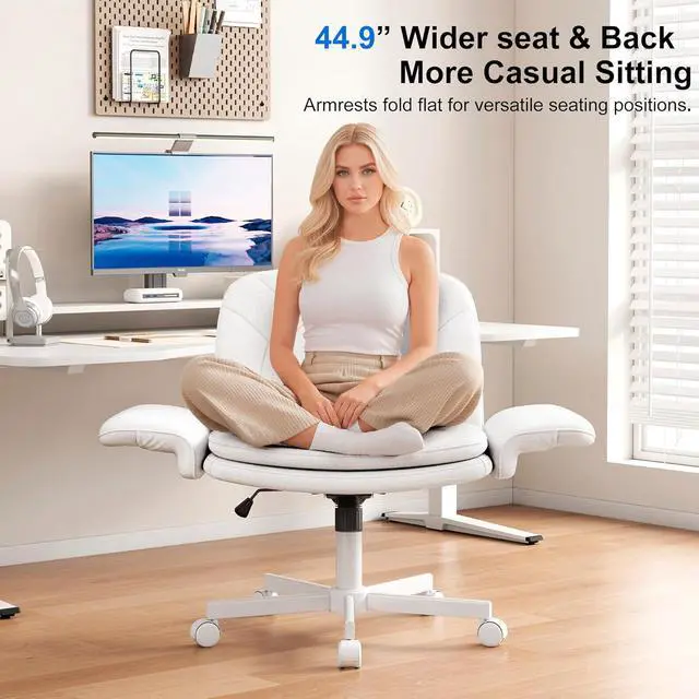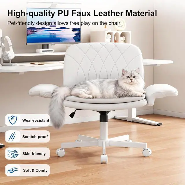 Pet-Friendly PU Faux Leather & Versatile Armrests: Crafted from premium wear-resistant and scratch-proof synthetic leather, it is skin-friendly and non-irritating. Pets can play freely on the chair, and the outward-reclining armrests provide extra space for them. When you work, your pet can lie on the armrests to accompany you, creating a warm and cozy scene.