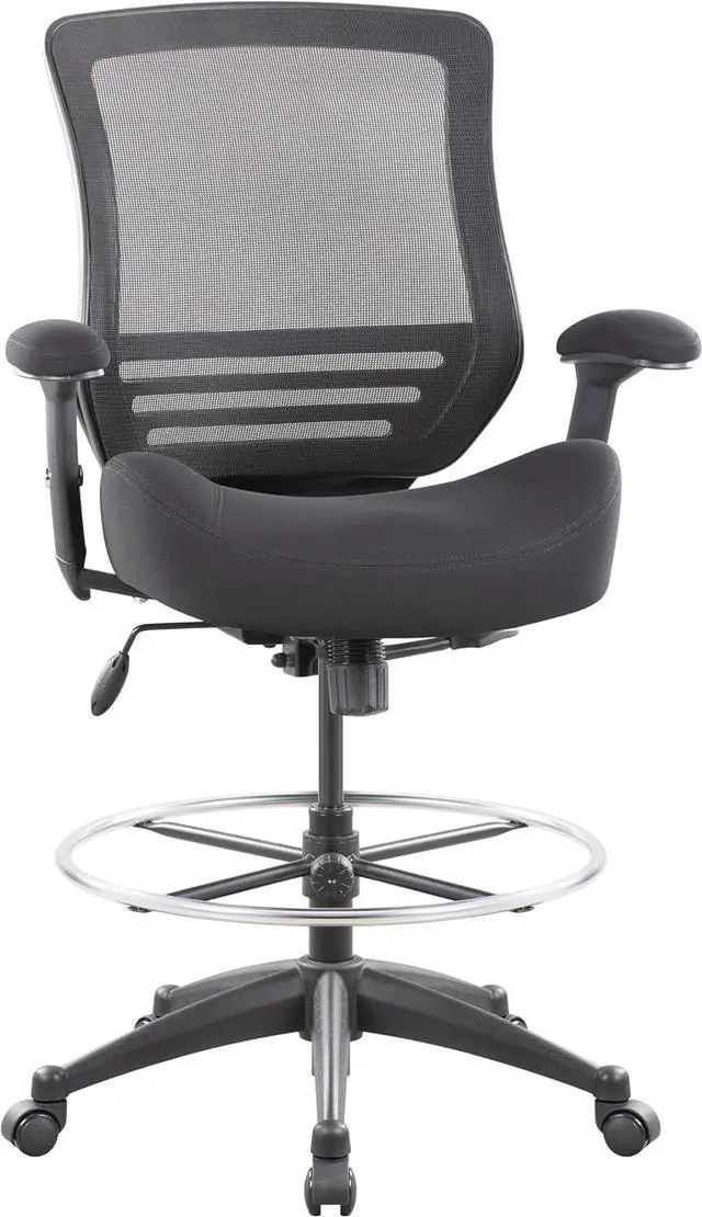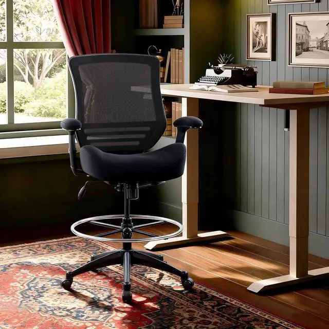 BOLISS 400lbs Mid Back Mesh Ergonomic Drafting Chair for Standing Desk Office Wide Chair Built-in Lumbar Support Big Adjustable Foot Ring Height Adjustable Armrest (Black)