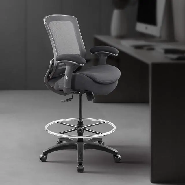 • Function:You can put your feet on the 24.016 inch bigger foot ring when you seat on the chair.Oversize feet ring is bigger than the seat,it will be easy to put your foot on the foot ring.Using our drafting chair does not cause bending of the feet or stress on the legs.When you work in a chair for a long time ,your legs will be very comfortable and there will be no pressure on your feet.