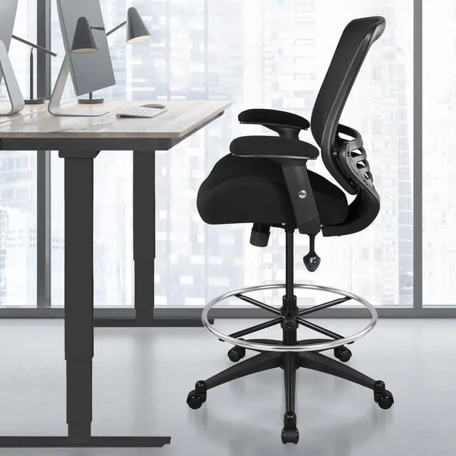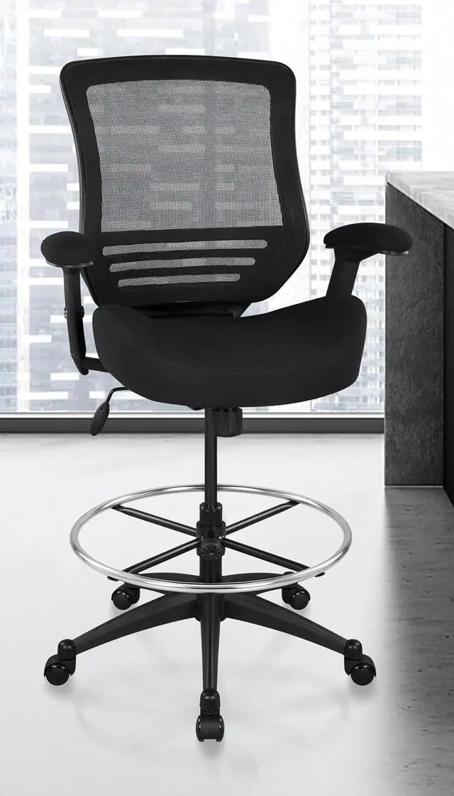 Function:You can put your feet on the 24.016 inch bigger foot ring when you seat on the chair.Oversize feet ring is bigger than the seat,it will be easy to put your foot on the foot ring.Using our drafting chair does not cause bending of the feet or stress on the legs.When you work in a chair for a long time ,your legs will be very comfortable and there will be no pressure on your feet.