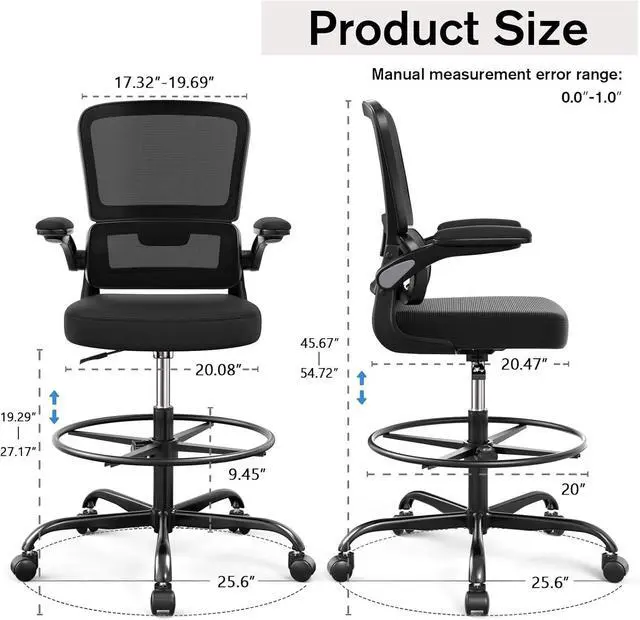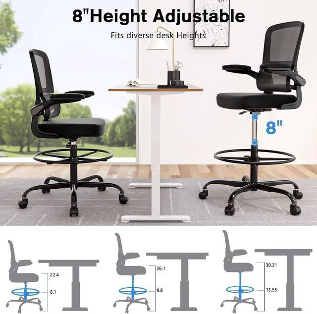 Ergonomic office chair: This well-designed ergonomic drafting chair has a wide curved lumbar support, is highly elastic, fully covered, and fits the body curve perfectly. It is suitable for adults of different heights and weights, providing good protection for your spine and back. This tall drafting chair is very suitable for use in offices and studios.