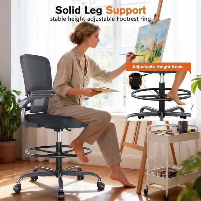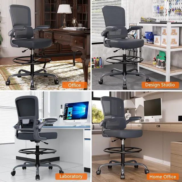 Ergonomic office chair: This well-designed ergonomic drafting chair has a wide curved lumbar support, is highly elastic, fully covered, and fits the body curve perfectly. It is suitable for adults of different heights and weights, providing good protection for your spine and back. This tall drafting chair is very suitable for use in offices and studios.