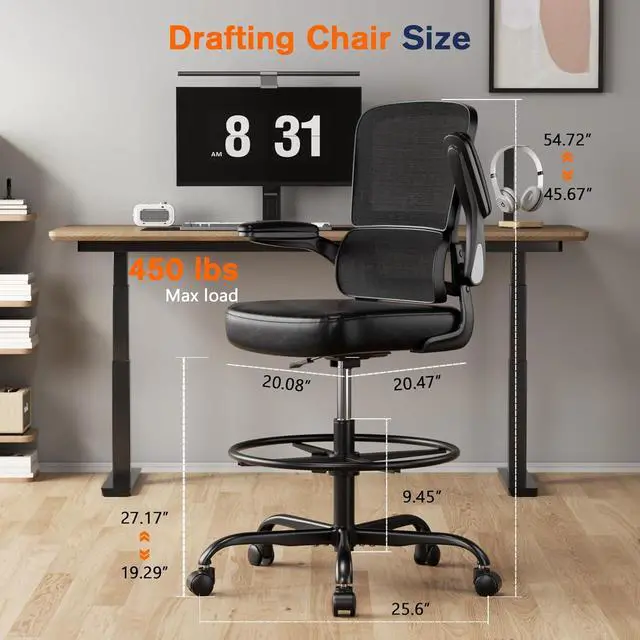 Ergonomic office chair: This well-designed ergonomic drafting chair has a wide curved lumbar support, is highly elastic, fully covered, and fits the body curve perfectly. It is suitable for adults of different heights and weights, providing good protection for your spine and back. This tall drafting chair is very suitable for use in offices and studios.