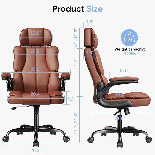 Executive Leather Office Chair, Computer Chair with Thick Cushion & Lumbar Support, Ergonomic Desk Chair with Adjustable Headrest & Armrests,Brown