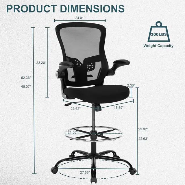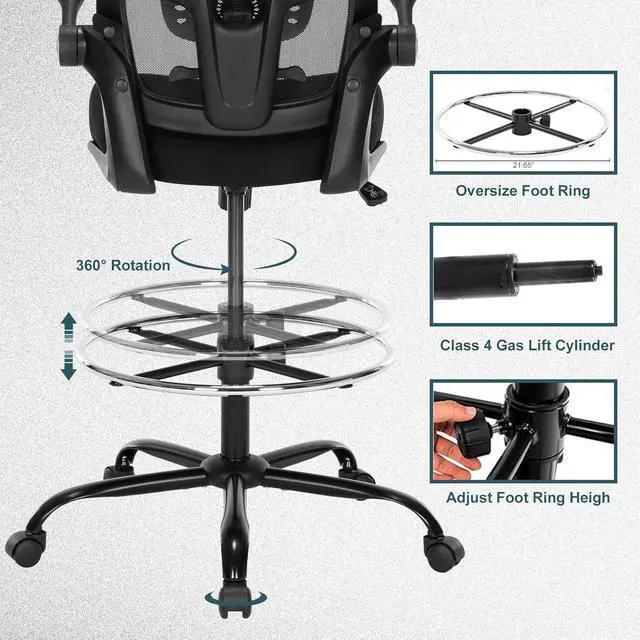 Ergonomic Excellence Drafting ChairsExperience unparalleled comfort with a breathable mesh back and 2.36" foam breathable mesh seat designed to keep you cool and focused throughout the day. Adjust the lower back lumbar support to maintain optimal posture.