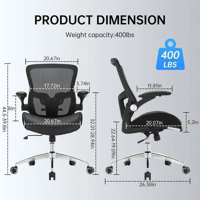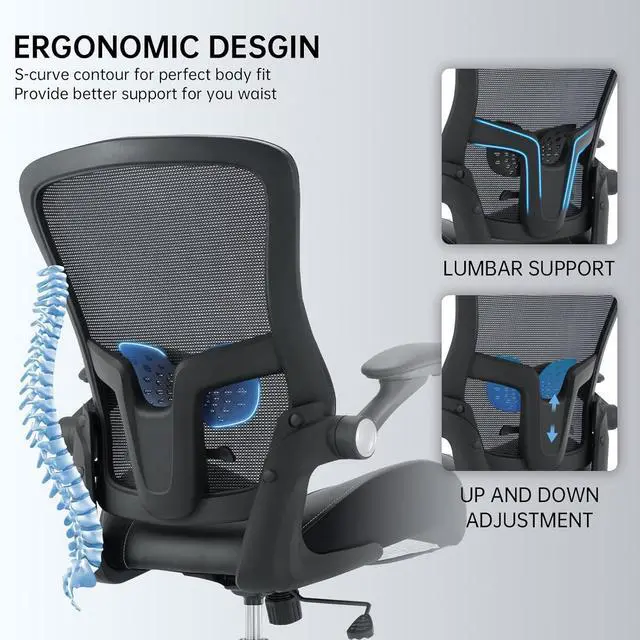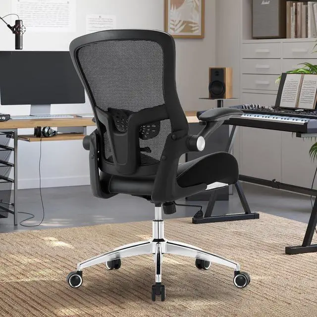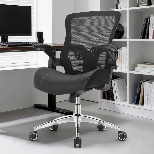 Space-Saving Adjustable ArmrestsThis computer chair features PU-padded armrests that can be adjusted sideways and flipped up, providing ergonomic support for your arms and shoulders to reduce fatigue during long sitting sessions. When not in use, simply lift the armrests to tuck the chair neatly under your desk, saving space and keeping your workspace organized.