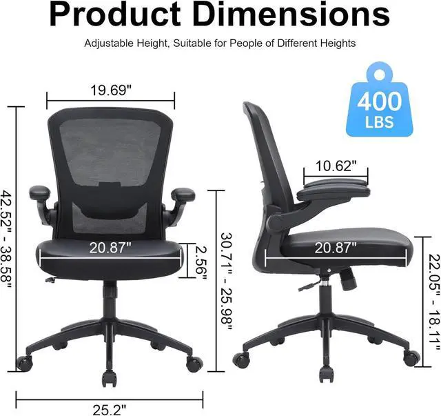 Heavy Duty Office Chair, 400lbs Ergonomic Desk Office Chair for Heavy People, Home Office Desk Chairs with Flip-Up Arms, Executive Computer Desk Chair with Adjustable Seat Height & Lumbar Support