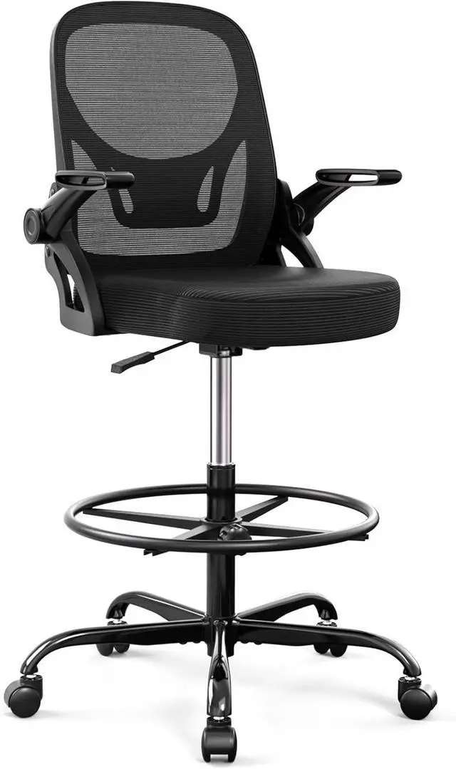 Alolo 450lbs Drafting Chair Tall Office Chair for Standing Desk with Flip-up Armrests,Ergonomic High Desk Chair with Lumbar Support and Adjustable Footrest Ring for Office,Black