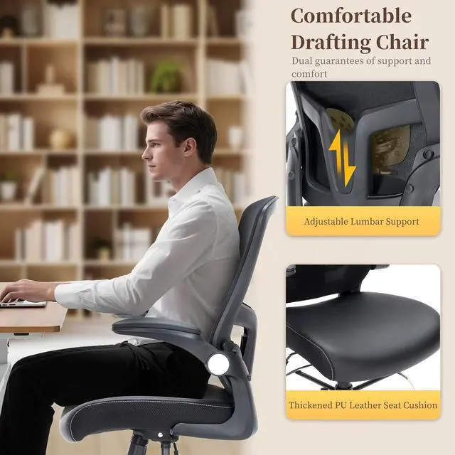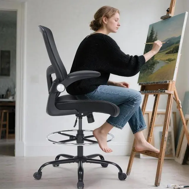 Ergonomic Office Drafting Chair: The ergonomic design adapts seamlessly to high drafting tables and standing office desks; The adjustable lumbar support is designed to provide the most suitable lumbar support and can reduce fatigue over long work sessions