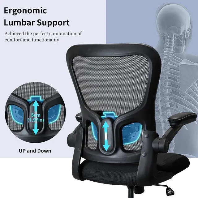 Comfortable Computer Desk Chair: The breathable mesh back of the seat and the 2.8 inches thick streamlined seat cushion are soft and elastic enough to reduce the discomfort caused by sitting for a long time; Breathable mesh structure greatly improves air permeability and avoids sultry feeling, especially in hot season; Padded armrests provide extra comfort and support for your arms.