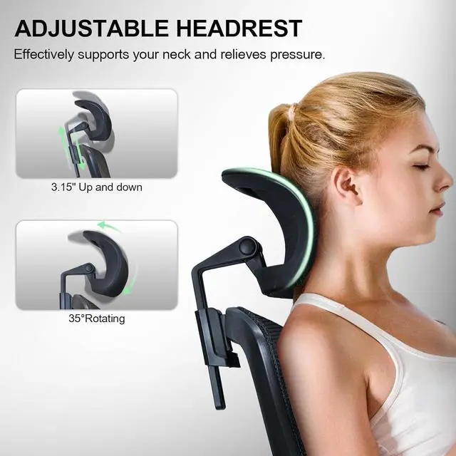 Adjustable HeadrestThe computer chair headrest can be easily adjusted to fit different body types, the height can be adjusted up and down by 3.15", and the angle can be adjusted from 90°to 125°,providing more support for the head and neck, avoiding neck fatigue and soreness after working for a long time.