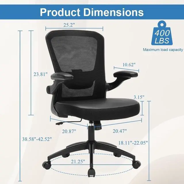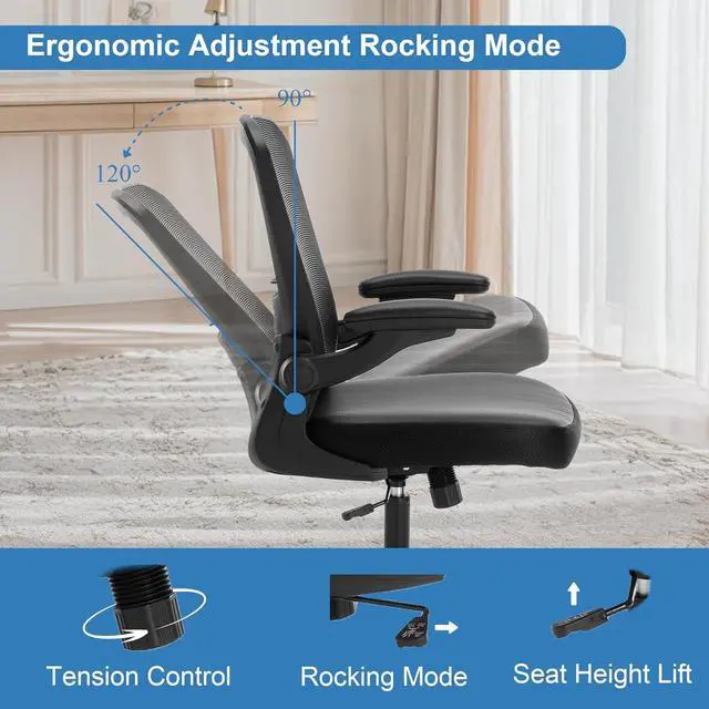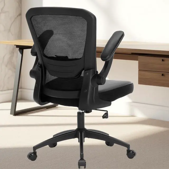 Adjustable Mesh Desk Chair This mesh computer chair offers an adjustable height range of 18.11-22.05 inches, making it suitable for users of varying heights. The 90° flip-up pu armrests provide flexibility and allow the chair to be easily stored under your desk, saving space when not in use.