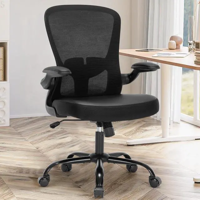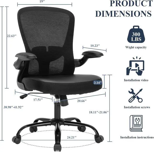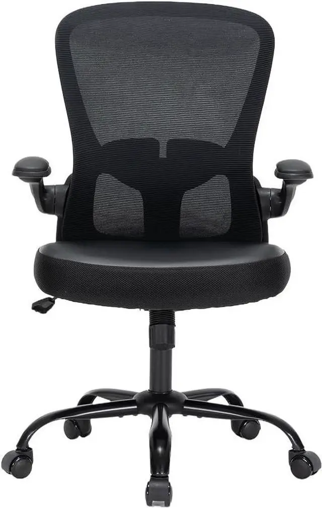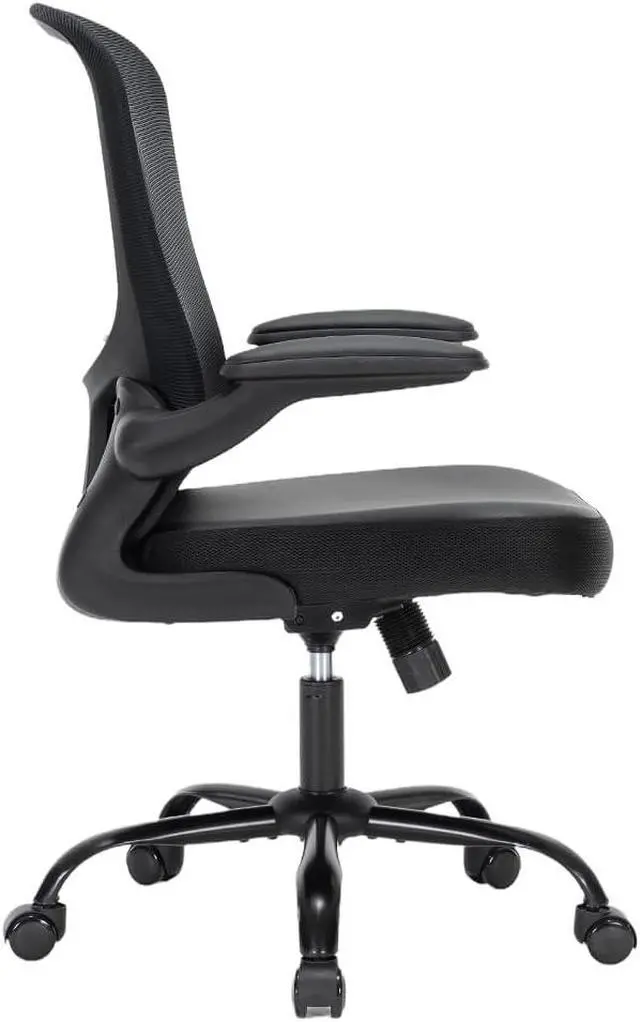 Versatile Mesh Office Chair Featuring flip-up armrests for convenient storage under desks, these office chairs are designed to save space. Smooth-rolling wheels enable easy mobility around the office. The seat height adjusts between 18.11 to 21.06 inches. For relaxation, simply pull the adjustment lever and rotation button to activate rocking mode, with a backrest tilt angle ranging from 90° to 130°