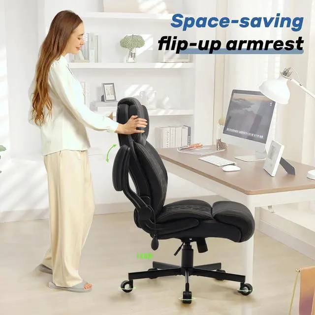 550LBS Big and Tall Office Chair, Comfy Heavy Duty Executive Chair with Adjustable Lumbar Support Double Spaces Casters, PU Leather Extra Wide Seat Ergonomic Computer Desk Chair for Back Pain, Black