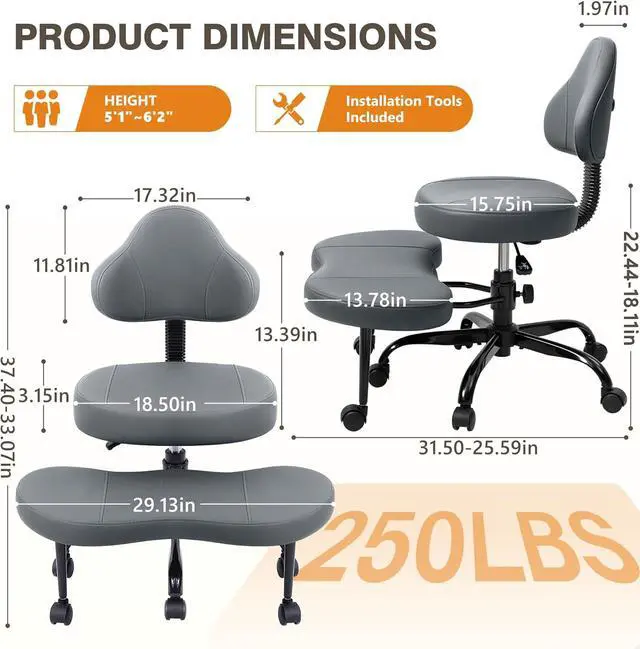 Quick Setup & Reliable Support: The yoga chair can be assembled with the simple tools that come with packing. Supports up to 250 lbs with a sturdy frame and SGS-certified gas lift for reliable durability.
