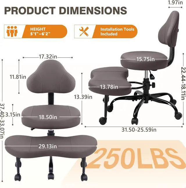 Quick Setup & Reliable Support: The yoga chair can be assembled with the simple tools that come with packing. Supports up to 250 lbs with a sturdy frame and SGS-certified gas lift for reliable durability.
