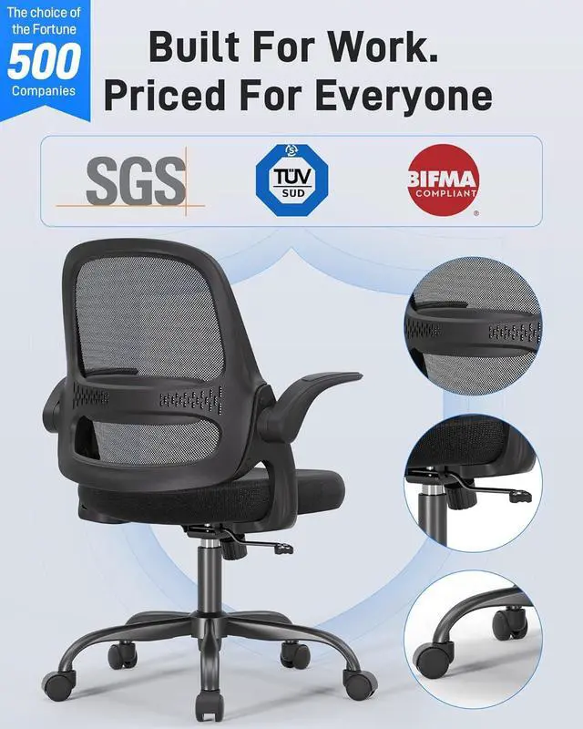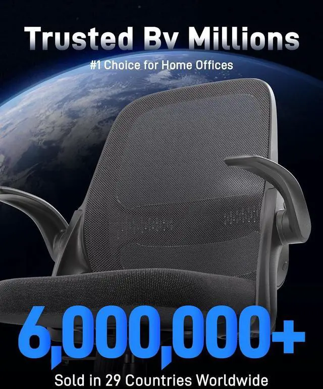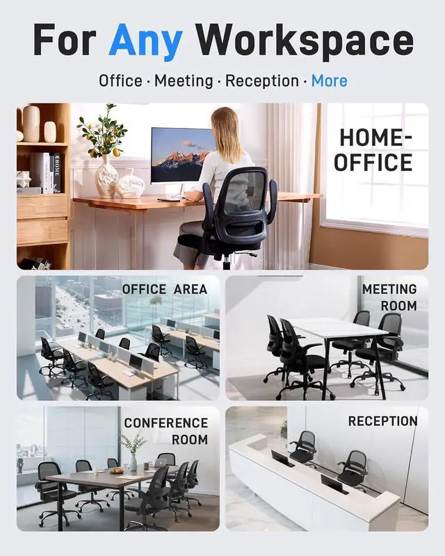 Space-Saving Flip-Up Armrests: Flip-up armrests let you slide the chair under your desk easily, ideal for small spaces like bedrooms, home offices, dorm rooms, or apartments