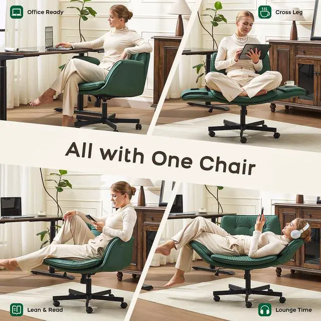 DURABLE CONSTRUCTION: Supports up to 330 pounds with stainless steel frame and high-grade PU leather covering, featuring swivel functionality and manual recline for versatile use in offices, bedrooms, and living spaces.