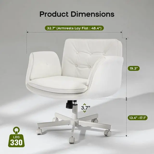 DURABLE CONSTRUCTION: Supports up to 330 pounds with stainless steel frame and high-grade PU leather covering, featuring swivel functionality and manual recline for versatile use in offices, bedrooms, and living spaces.