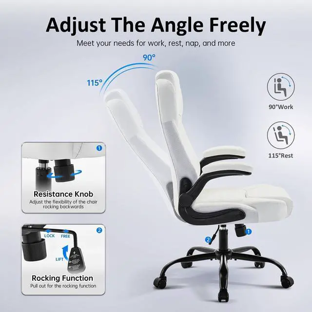Adjustable Comfort Features: Adjust the backrest angle from 90° to 115° and switch between rocking and locking modes. The seat height is also adjustable for optimal comfort