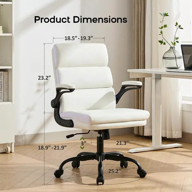 Office Chair Adjustable Desk Chair Mid Back Executive Comfortable Bonded Leather Ergonomic Back Support Home Computer Chair with Padded Flip-up Armrest Swivel Wheels (White)