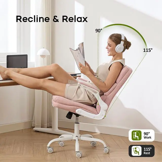 Office Chair Adjustable Desk Chair Mid Back Executive Comfortable Fabric Ergonomic Back Support Home Computer Chair with Padded Flip-up Armrest Swivel Wheels (Pink)
