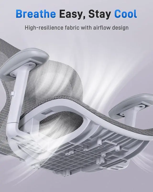 Breathable Mesh Support: Both the seat and backrest use high-density mesh for superior airflow. Stay cool and supported during long sitting sessions with a breathable ergonomic chair that prevents heat buildup and enhances daily comfort