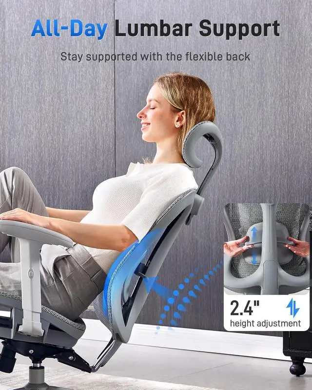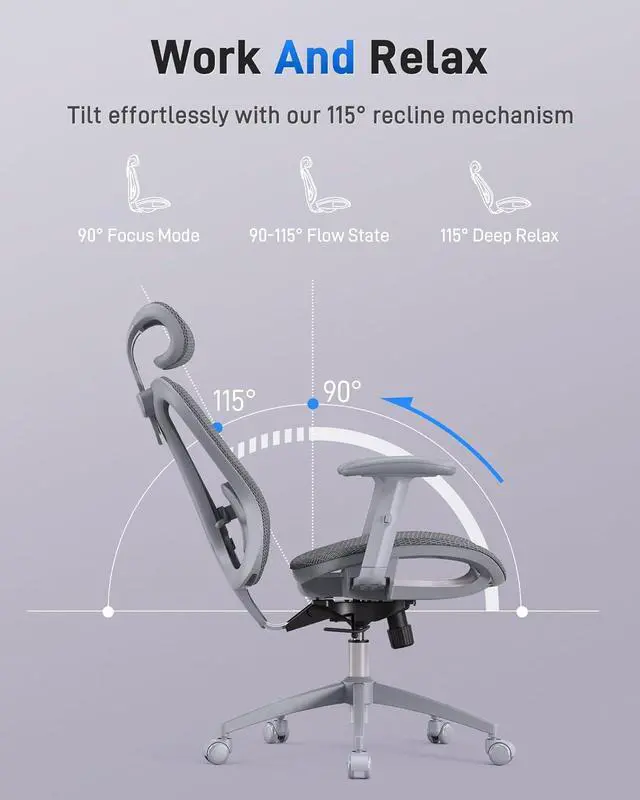Adjustable Comfort: This mesh desk chair offers 5 adjustable parts: headrest and lumbar support (up/down), seat height, armrest height, and a 90115° rocking tilt. Personalize your sitting position to stay comfortable through every task