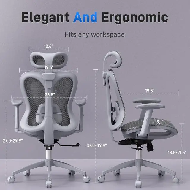 Elegant Design: Inspired by butterfly wings, this ergonomic office chair features a sculpted backrest that fits the back curveoffering both graceful design and full support for long hours at work or in your home office