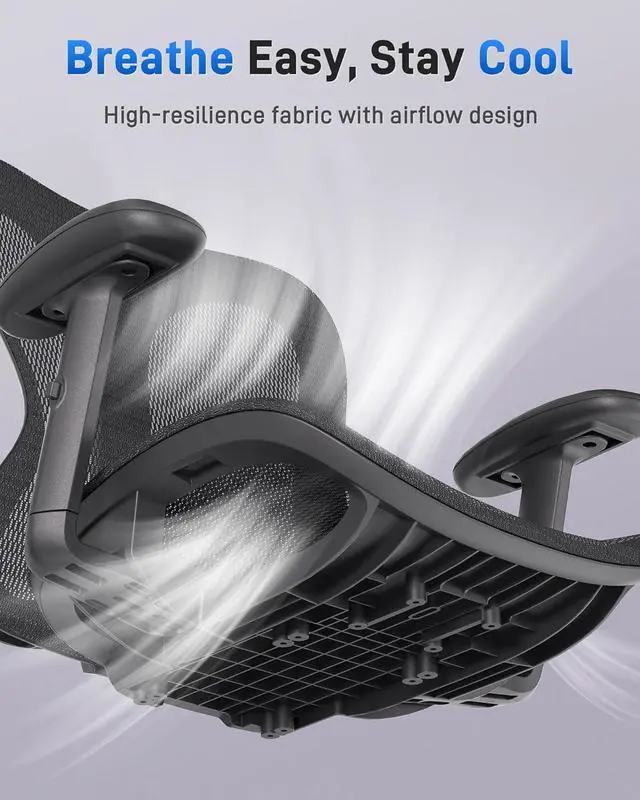 Breathable Mesh Support: Both the seat and backrest use high-density mesh for superior airflow. Stay cool and supported during long sitting sessions with a breathable ergonomic chair that prevents heat buildup and enhances daily comfort