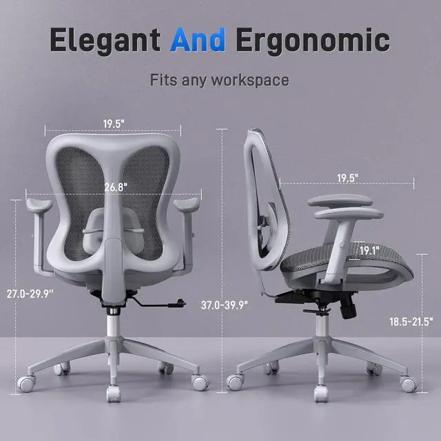 Elegant Design: Inspired by butterfly wings, this ergonomic office chair features a sculpted backrest that fits the back curveoffering both graceful design and full support for long hours at work or in your home office