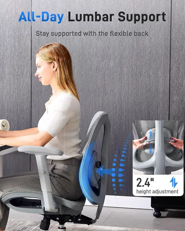 Breathable Mesh Support: Both the seat and backrest use high-density mesh for superior airflow. Stay cool and supported during long sitting sessions with a breathable ergonomic chair that prevents heat buildup and enhances daily comfort