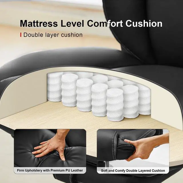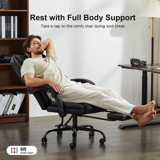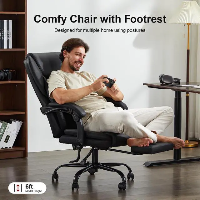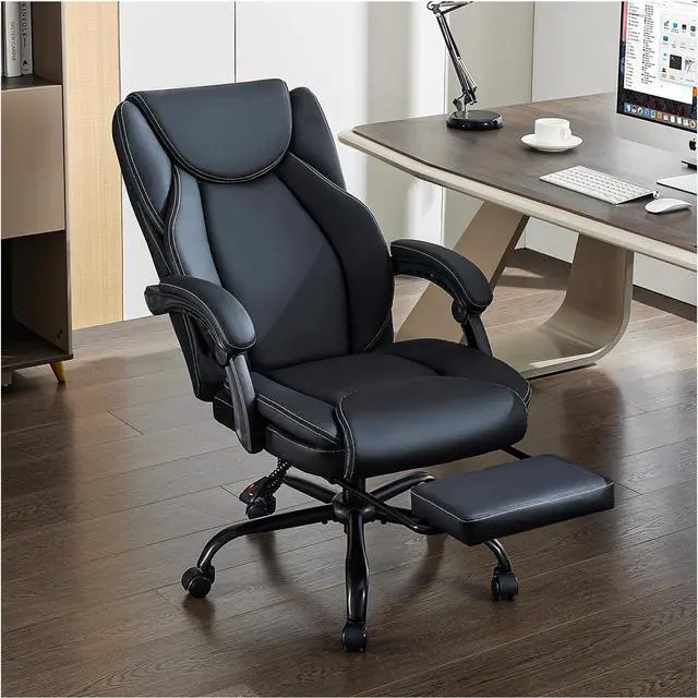 Office Chair,Big and Tall 400Lbs with Footrest, Ergonomic with Adjustable Backrest, Reclining Computer Chair with Double Lumbar Support, Thick Bonded Leather for Comfy (Black)