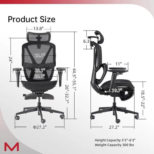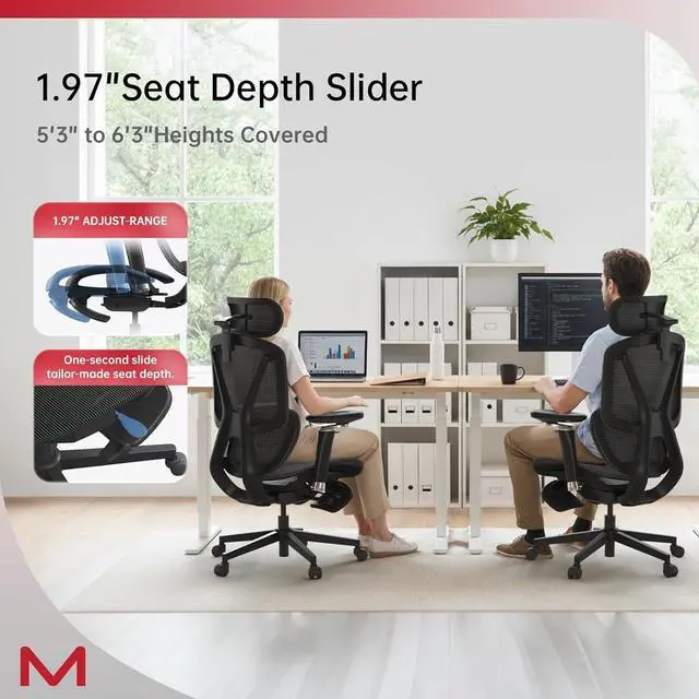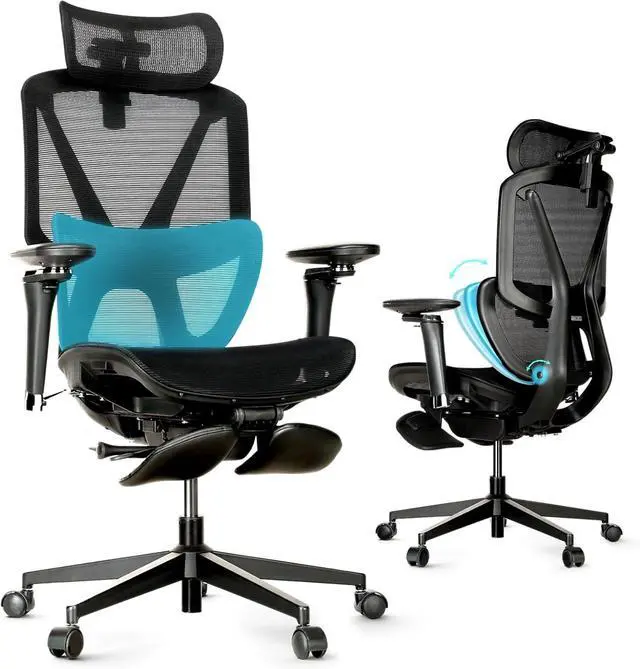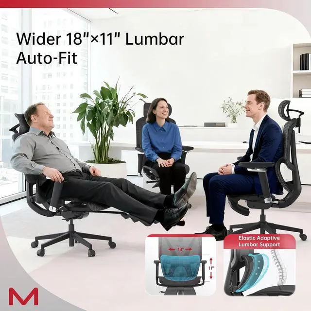 Ultra-Wide Adaptive Lumbar SupportEngineered for 5'3"-6'3"adults, this ergonomic mesh office chair with lumbar support features an extra-wide adaptive lumbar system (18"×11") that aligns with L1-L5 vertebrae to cut 37% of seated pressure during 10-hour marathons. A 13.8" wide 3D headrest cradles your neck while the tall high-back frame supports your entire spineideal for big-and-tall users at standing desks or intense work sessions.