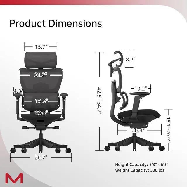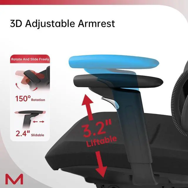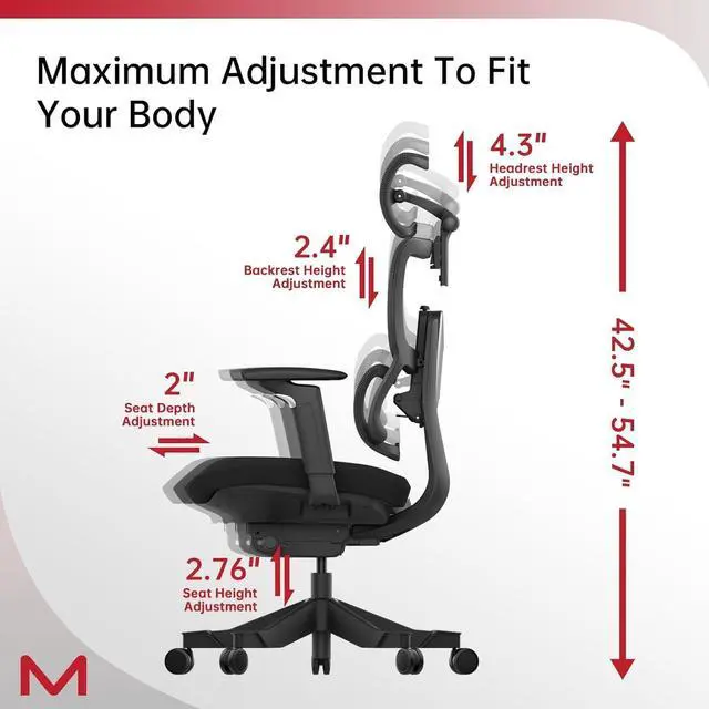 Ultra-Wide Adaptive Lumbar SupportEngineered for 5'3"-6'3"adults, this ergonomic mesh office chair with lumbar support features an extra-wide adaptive lumbar system (18"×11") that aligns with L1-L5 vertebrae to cut 37% of seated pressure during 10-hour marathons. A 13.8" wide 3D headrest cradles your neck while the tall high-back frame supports your entire spineideal for big-and-tall users at standing desks or intense work sessions.