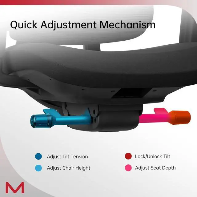 All-Around Adjustable Armrests, Weight-Adaptive MechanismThe office desk chairs armrests give 20" front-back, 1.8" left-right and 3.1" height travel plus 360° & 270° rotation, all wrapped in skin-friendly PU leather. A quick-adjust lever lets you tune seat depth (1.97" range), chair height and recline without standing, ensuring a personalized fit for every posture.