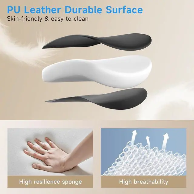 Breathable and Durable, Load up to 350lbsThe breathable mesh backrest helps keep your back cool and sweat-free. PU leather on the seat and armrest surfaces is skin-friendly, wear-resistant, waterproof and easy to clean. The chair features a sturdy frame and a Class-3 gas lift, certified by BIFMA and SGS, and supports up to 350lbs