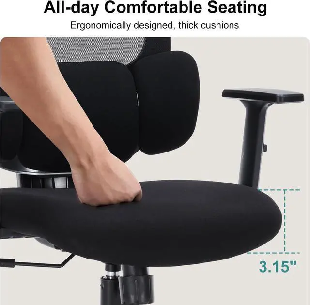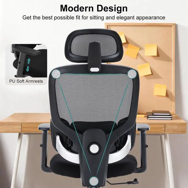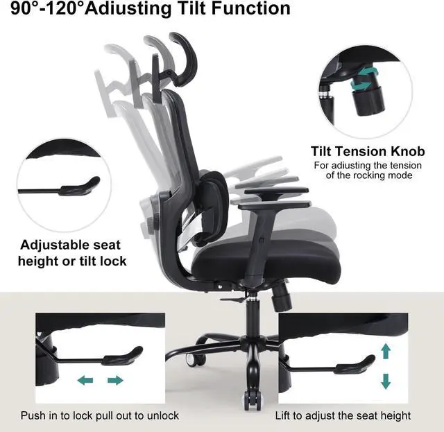 Tailored Comfort for Work and Relaxation Discover personalized support with this highly adaptable office chair. Recline smoothly and securely up to 120 degrees, while the adjustable lumbar support and headrest work together to cradle your spine and neck. With the addition of 4-inch height-adjustable armrests, you can effortlessly configure your ideal throne for productivity or a well-deserved break.